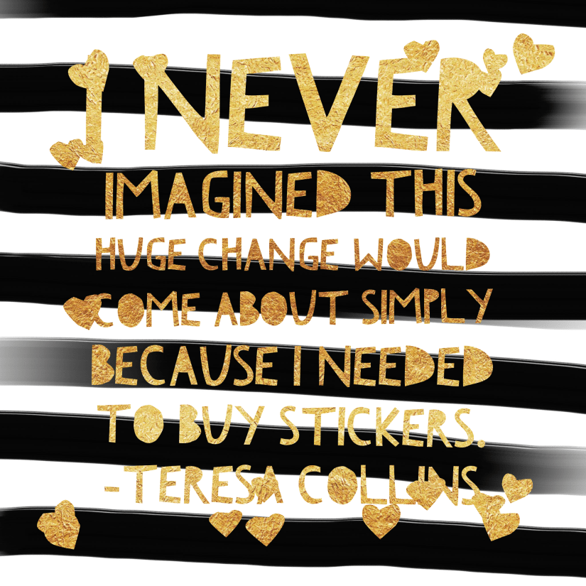 To quickly summarize the summary, Teresa Collins is a designer in the crafty world with her own line of products and partnerships with everyone from Fiskers to Silhouette. She’s overcome a lot of stuff in her life and is very much an optimist. So armed with my best attitude and giving updates as I went on Instagram (which you can watch here), I dove in.