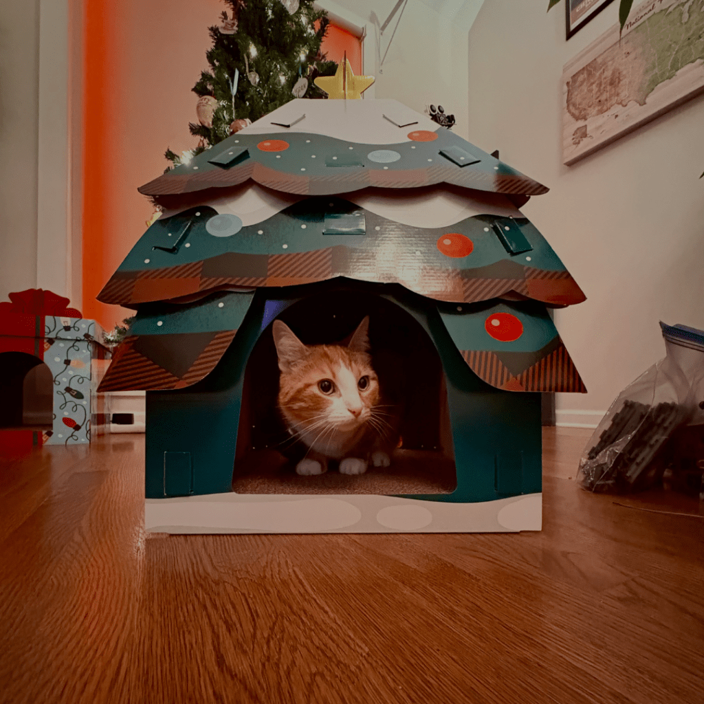 Interestingly, November tends to be one of the hardest months of the year (bad breakups, major losses, general chaos), and building these Cat Houses tends to be an anchor point to shifting towards a Holly-er Jolly-er mindset. It was no different this year; I’d spent most of November in a funk and, even though I had ordered a Cat House from Chewy, was unmotivated to build it until the end of the month.